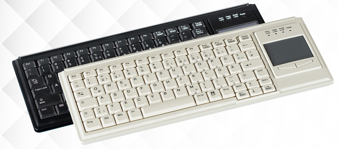 Teclado con touchpad de alta calidad y fiabilidad con estilo Notebook. Ideal para la indústria, maquinaria, vehículos, servidores, kioscos, aplicaciones médicas y hospitalarias. Touchpad suave y preciso de gran superfície.